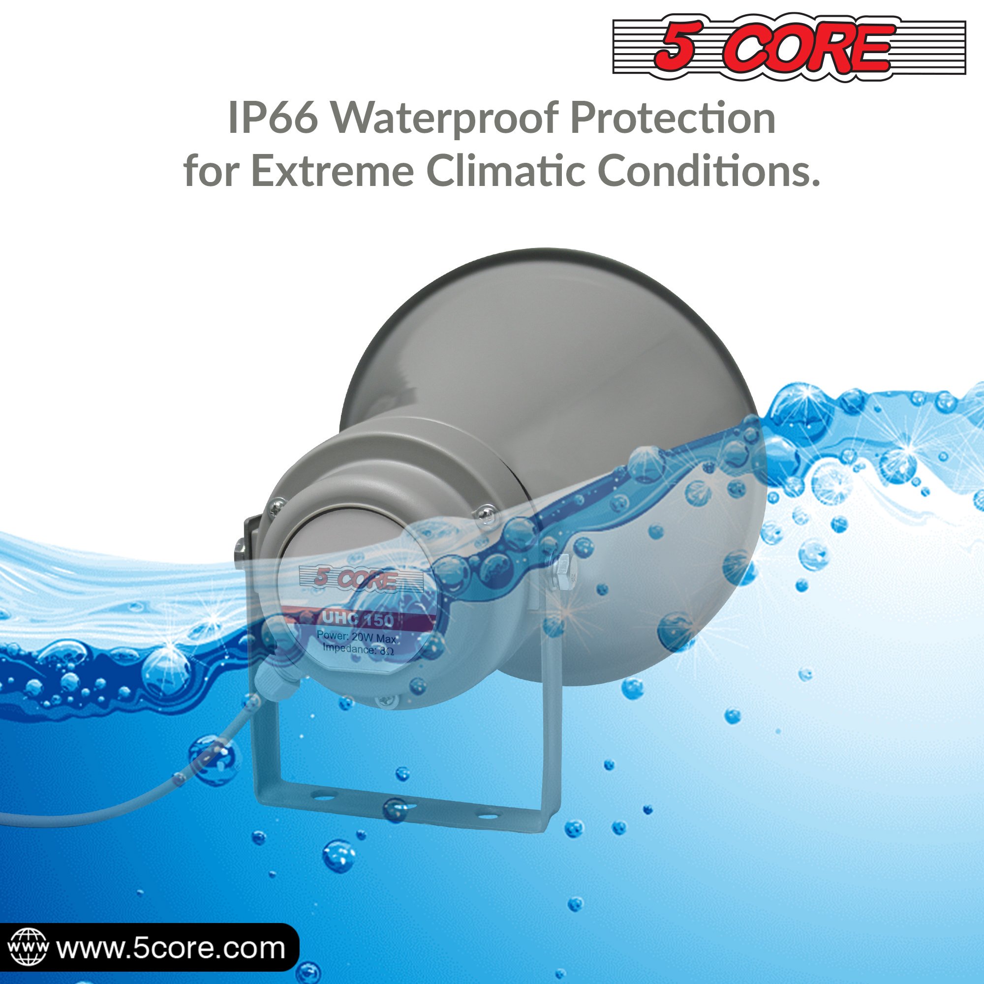5 Core PA Horn Loud Speaker 9 Inch Outdoor Indoor 20W 8 Ohm Durable All Weather Multi Purpose Loudspeaker for Music Speech Warehouse - UHC 150
