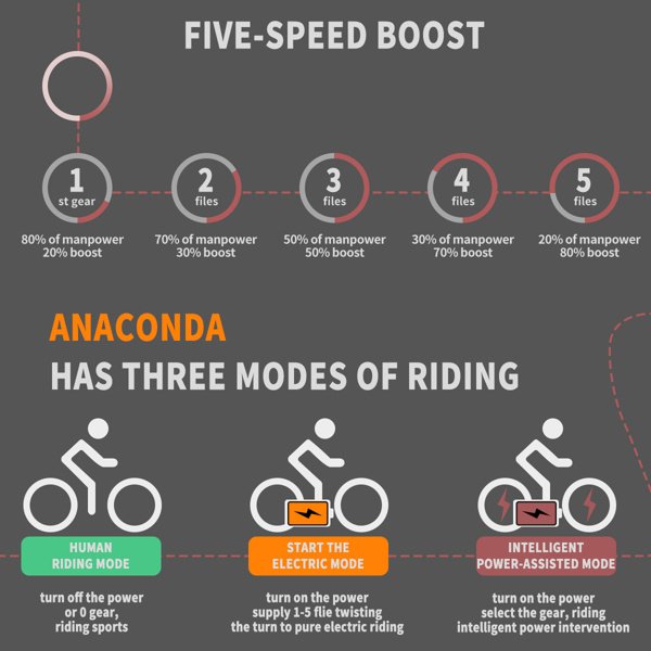 3 riding modes: pedal mode; power assist mode; full electric mode.