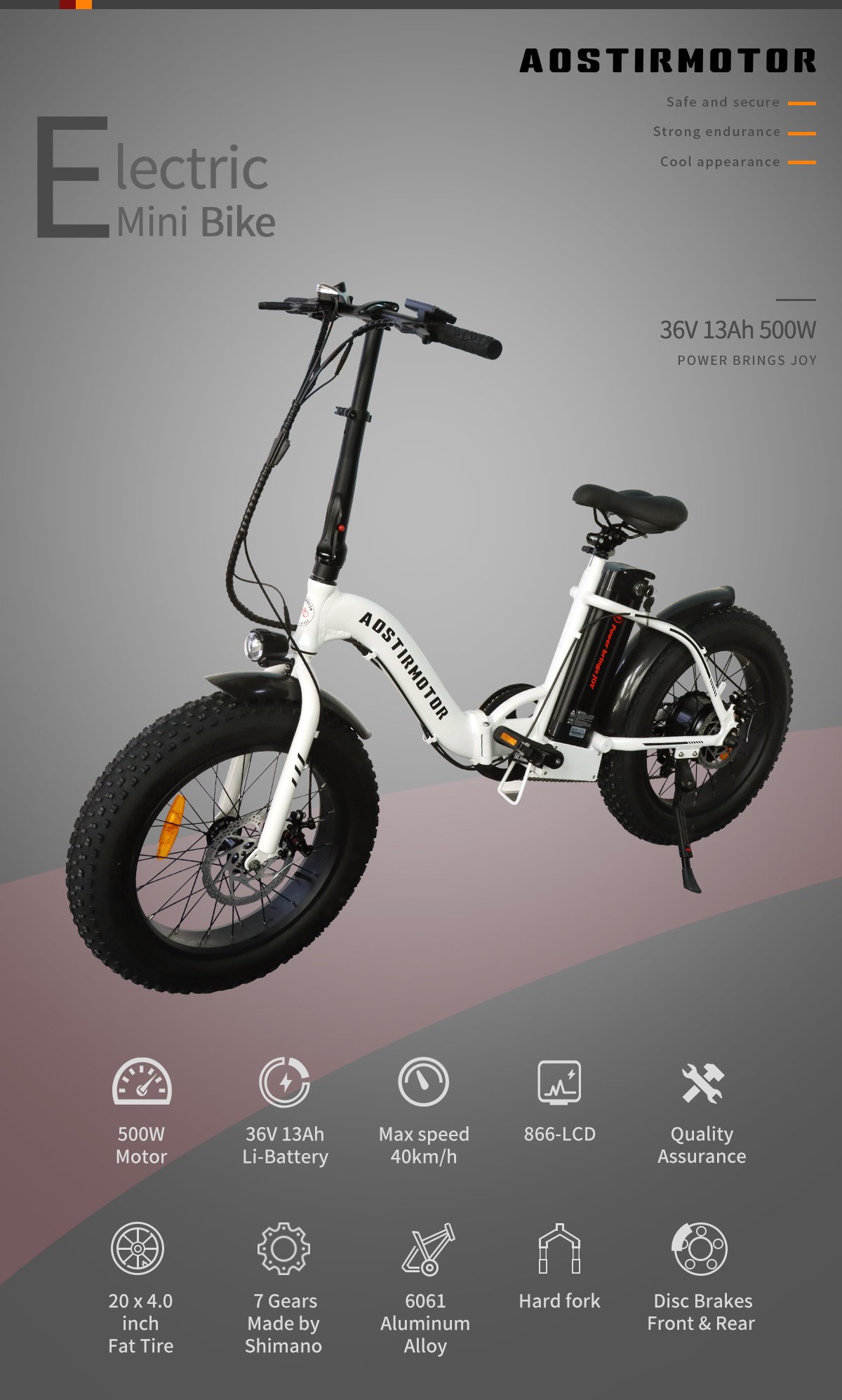 AOSTIRMOTOR EBIKE G20King of cost performance Foldable frame + removable lithium battery Super portable to help you ride anywhere The 500-watt motor is matched with 36V13AH gold to give you maximum endurance with minimum load Pure aluminum frame protection and hardcore range of 25-35KM in pure throttle mode