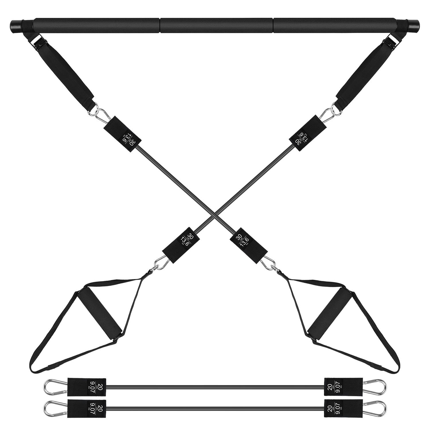*Customizable & Stackble*:No additional tools needed to assemble,easy to use. The include 3 rods enable you to assemble 2 or 3 into your preferred pilates bar at will. The 6 resistance bands with 3 intensity levels(20LBS+30LBS+40LBS) allows you to stack up to 40LBS/50LBS/60LBS/100LBS/120LBS/140LBS/180LBS. Customizable for beginners,intermediates and professionals. You can also add the provided door anchor to your daily exercise routine.