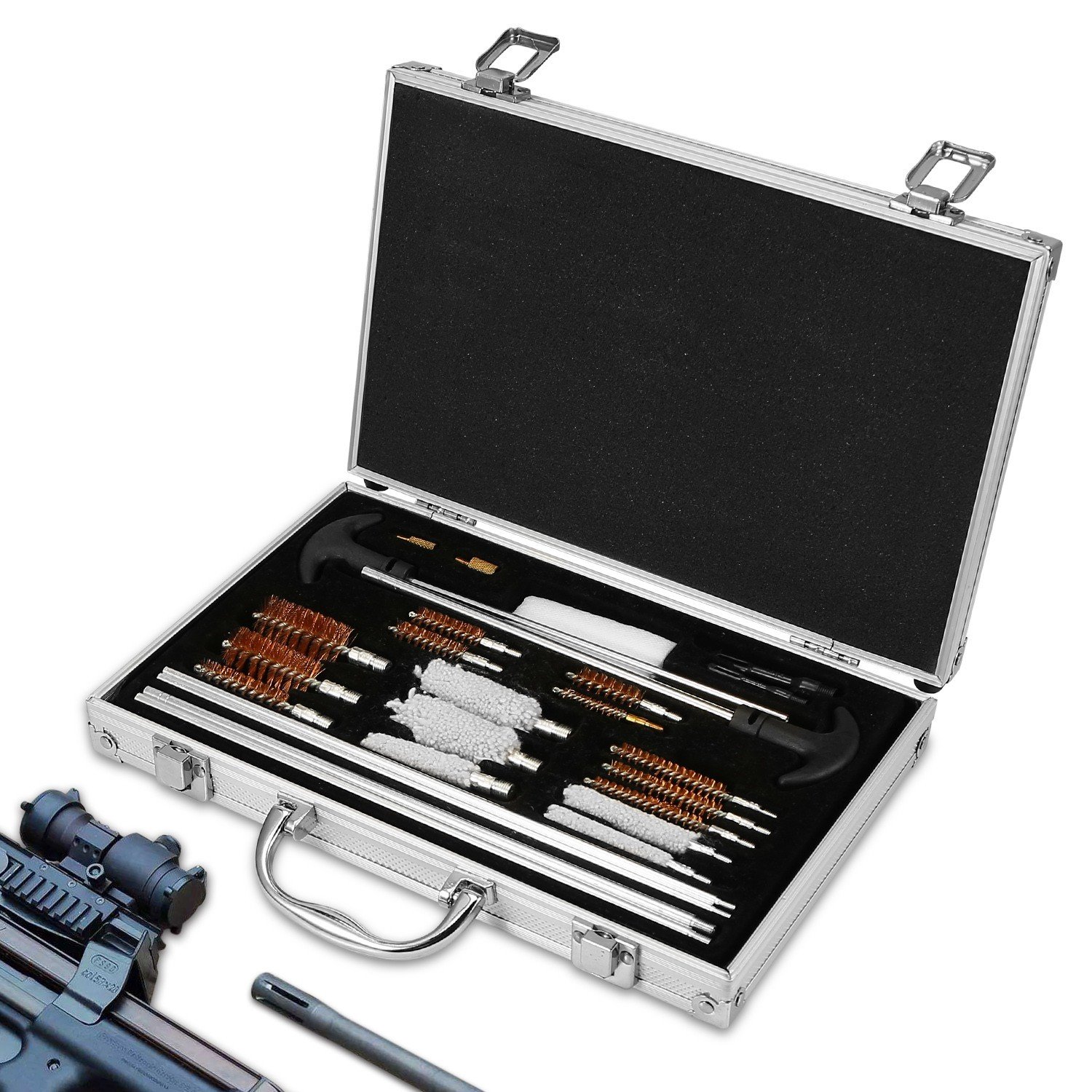 *User-Friendly on the Go Case*:Coming with a sturdy and secure suitcase; whether going hunting or going travelling; our gun cleaning kit will be a good partner for you.