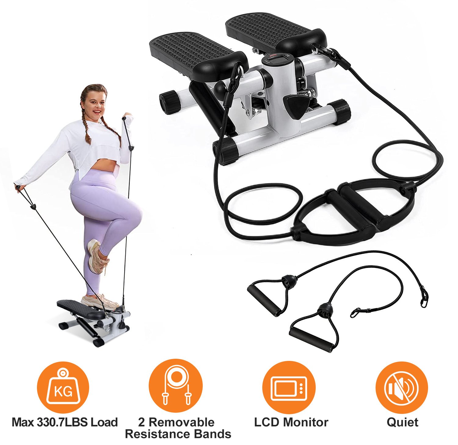 Home > Stepper for Exercise Mini Fitness Stepper with 2 Resistance Bands LCD Monitor Max 330.7LBS Load Stair Stepper Quiet Stepper