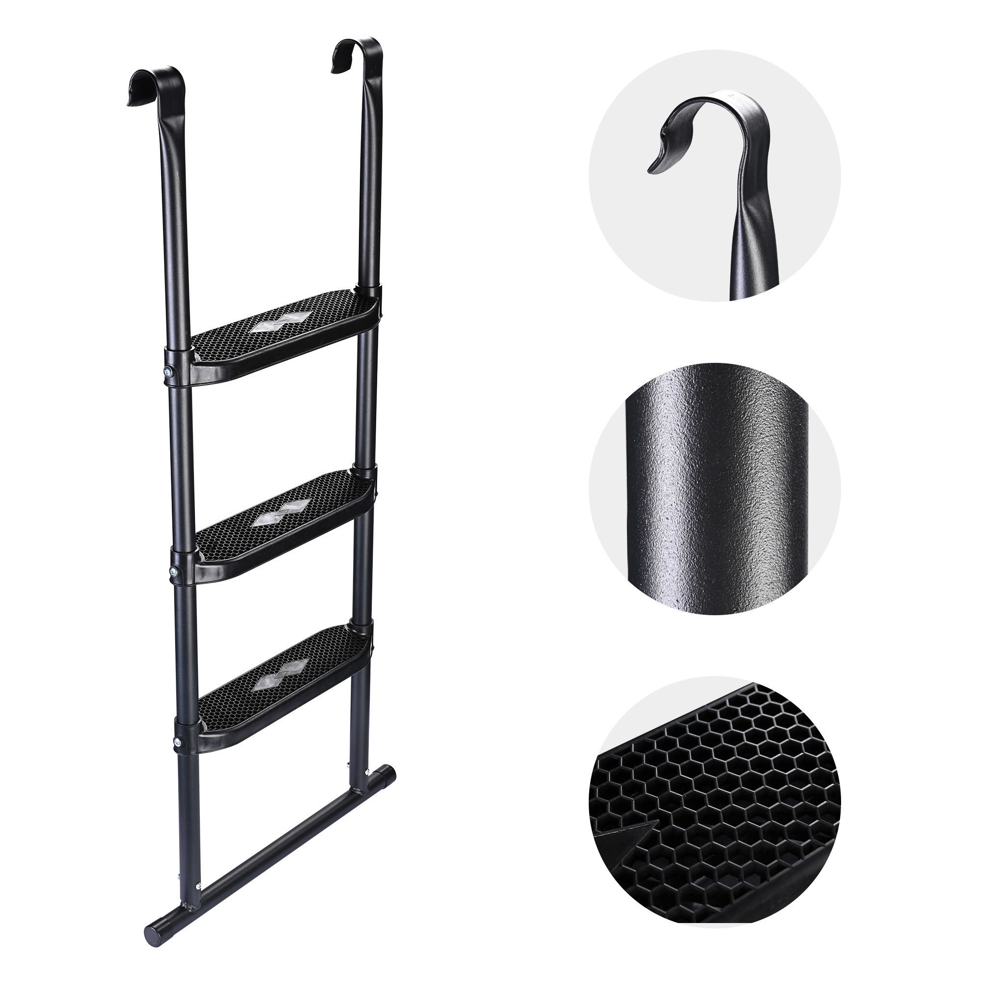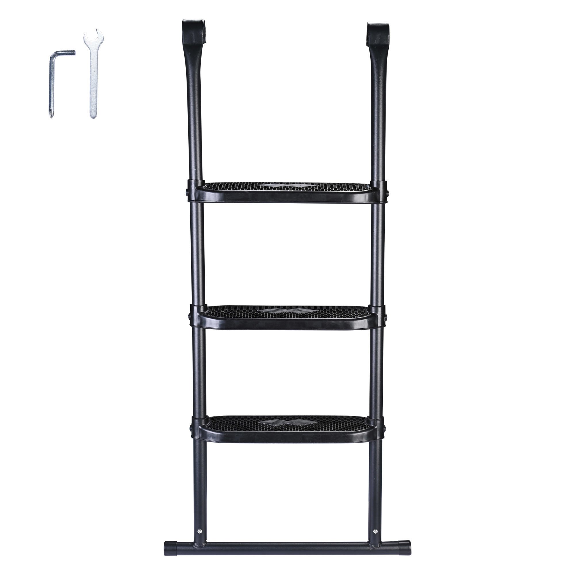 - Fits Most Trampolines - 43" bounce ladder perfectly fits 15ft or larger round; oval or rectangle trampolines; 3 Steps with proper step distance ensures easier climb into or out the trampoline for younger children